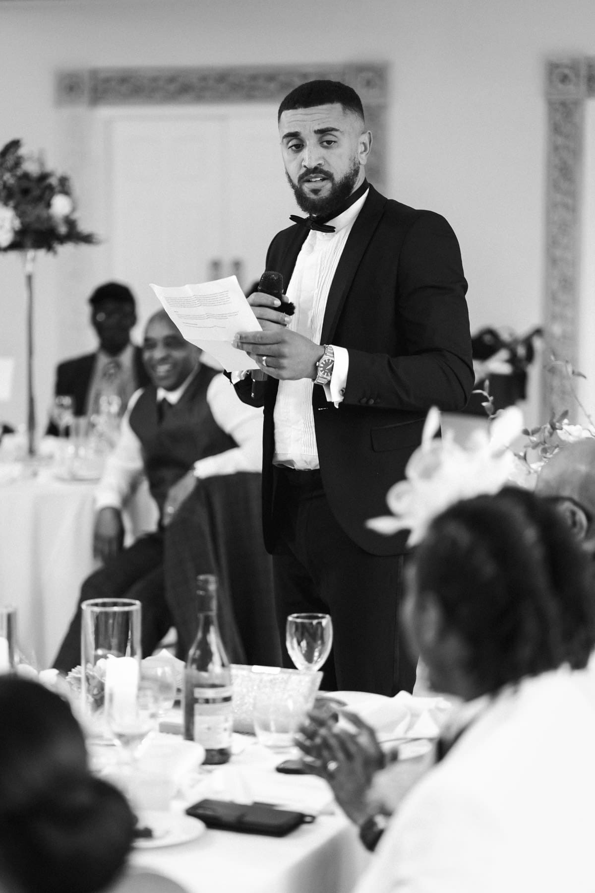 From Farnham, it was only a short drive back to Froyle Park where there were canapes and rum punch to welcome the wedding guests. We were able to grab a few portraits and time to enjoy the stunning grounds of Froyle Park, before entering into the wedding reception where we were all entertained by many speeches. The sheer number of friends and family that wanted to say a few words really demonstrated just how much love there was for the newlyweds, and set things up perfectly for a fab party that was to follow.