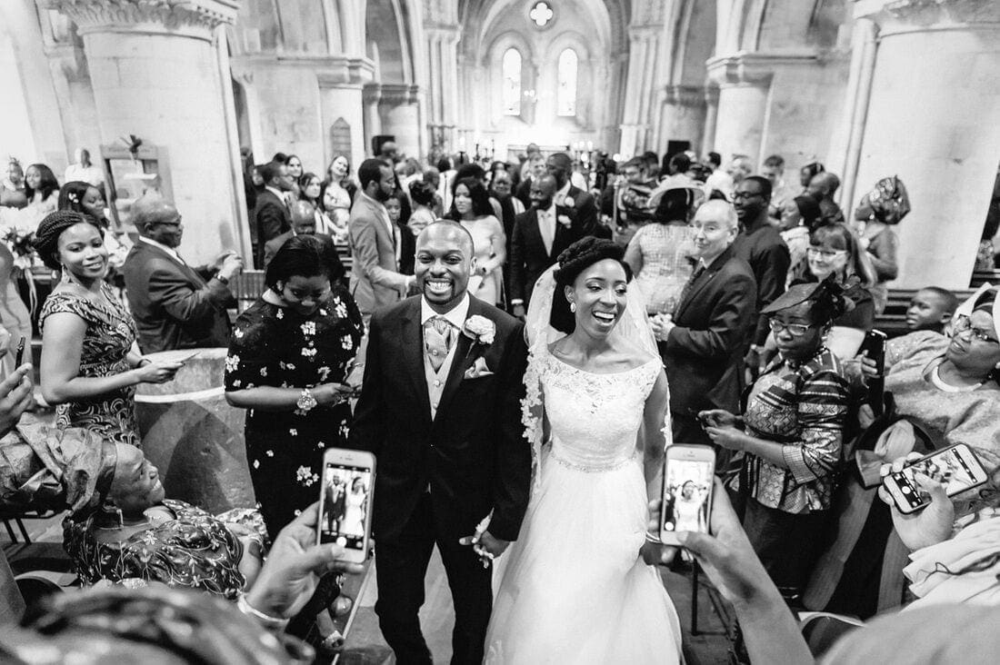 Onu and Dinachi’s Nigerian Wedding Photography Surrey was honestly the most fun I’ve had at a wedding. Their faith was clearly very important to them, as was their love of music. There were so many special moments of laughter during the ceremony, and their infectious joy was felt by all their guests thought the day at Northbrook Park. I loved how they were able to really enjoy every moment, from greeting guests as they processed out of church, to throwing their hands in the air as they were showered in confetti! I also really enjoyed the tradition of the bridal party and groomsmen dancing their way into the wedding breakfast. Something I’ve been fortunate to photograph a few times since, and a tradition that, provided they’ve got the moves, should definitely be encouraged amongst the bridal party and even your parents. For more details of my Nigerian Wedding Photography Surrey and Dinachi’s own personal thoughts on their day, and the planning process, check out their feature on The English Wedding Blog.