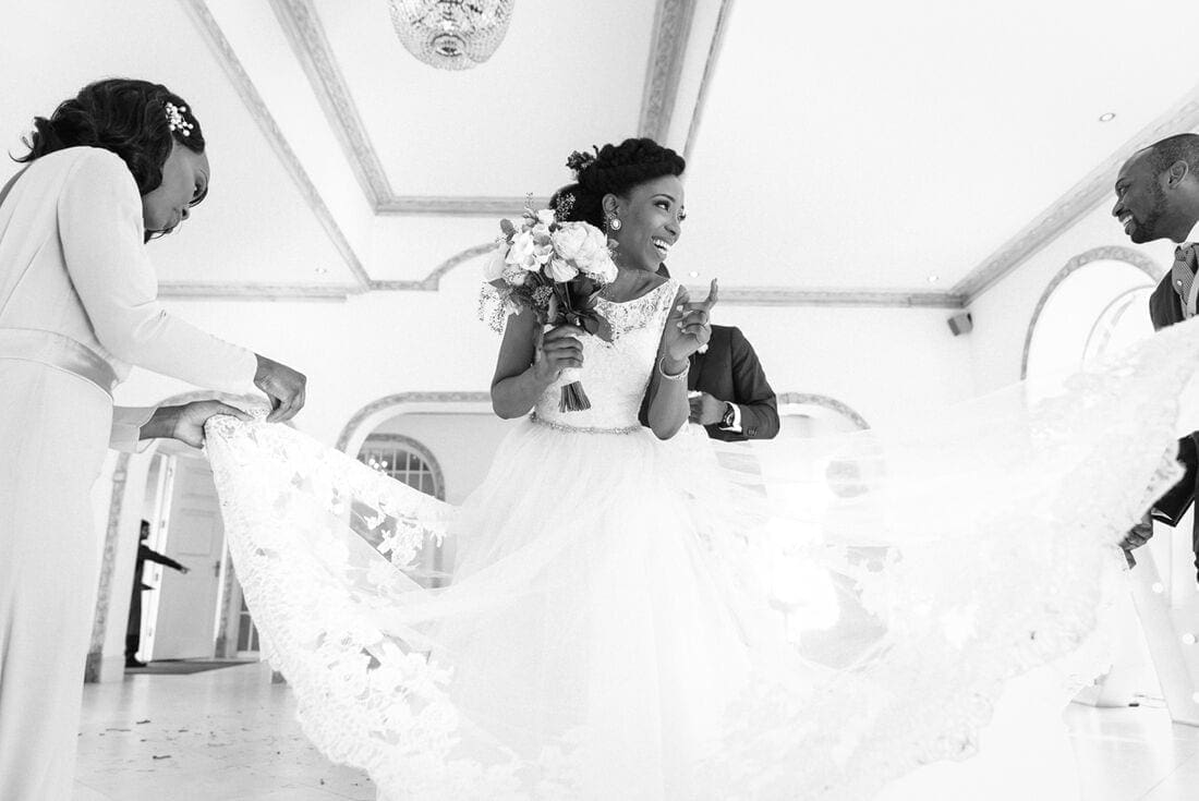 Northbrook Park is a wedding venue I know very well, but Onu and Dinachi’s was the first Nigerian Wedding Photography Surrey. We spoke at length before the big day about what I could expect from the traditions and how the day would run. Knowing the venue so well certainly helped, and I was also able to make a few recommendations to help capture as much of the day as possible, including travelling with Dinachi and her father on the way to church, and traveling back with the happy couple to Northbrook Park after the ceremony. I love doing this whenever I can, as it ensures I don’t miss a beat and can get some lovely pictures that help connect the story of the day. It was also a real pleasure to have Moritz of Schmittat Photography along for the day to help with photos at All Saints Church and the family groups.