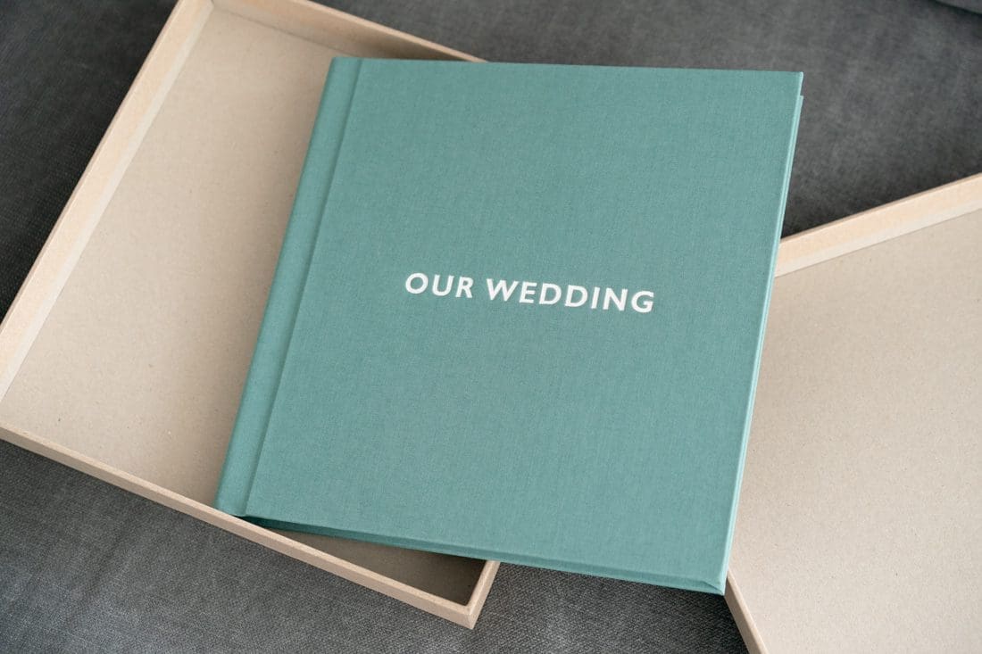 – OUR WEDDING Embossed on the cover in Gold, Silver or White, in Gill Sans font, and your wedding date on the inside title page (see examples)