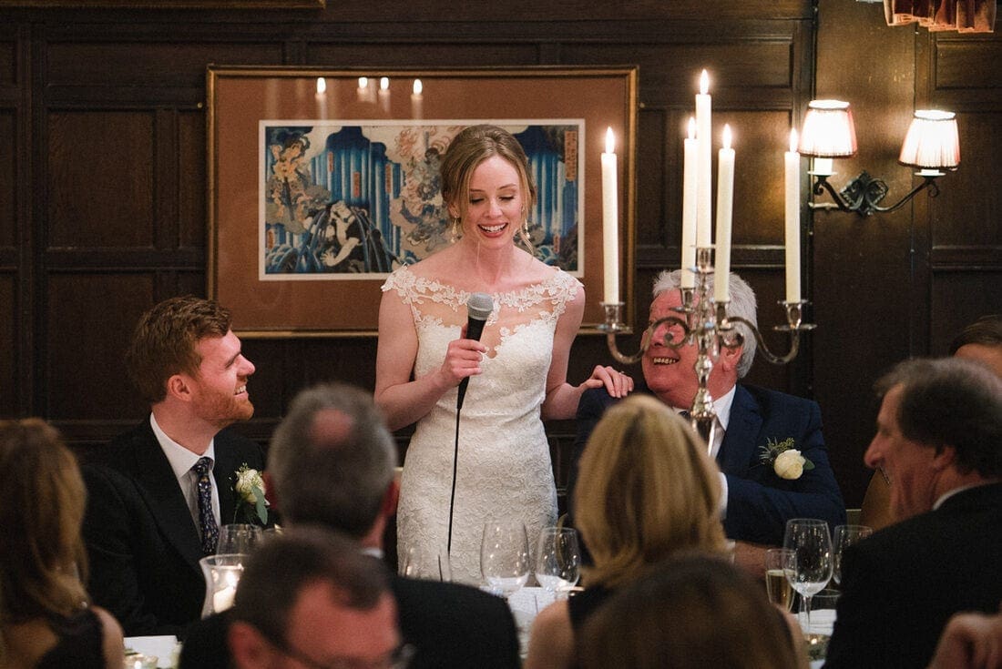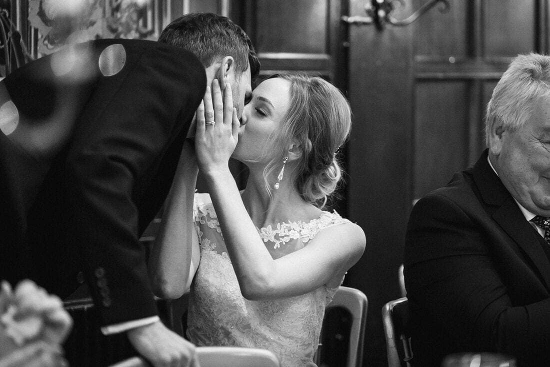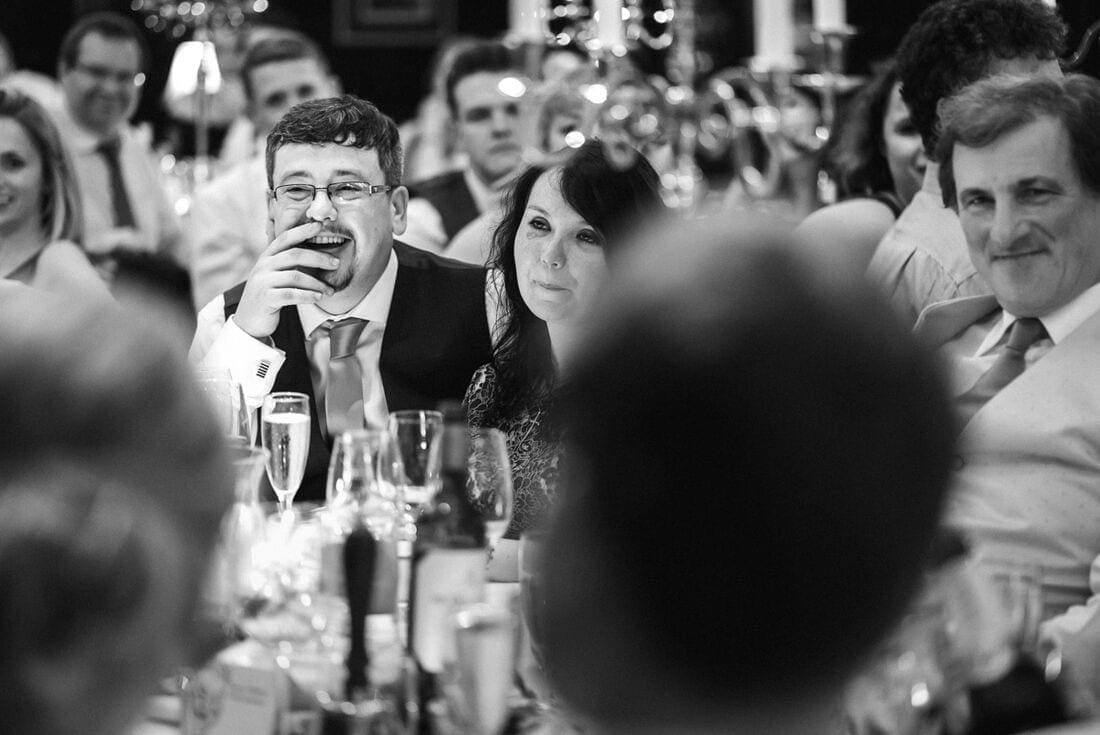 So happy were the couple that they literally danced their way out of the ceremony, and the rest of the day continued in much the same vein, with great speeches (I love it whenever the bride chooses to do a speech of her own) and lots of dancing. The photo of their first dance, which you can see below, is one of my favourites of all time in my portfolio, and demonstrates the importance of low light wedding photography for winter weddings!