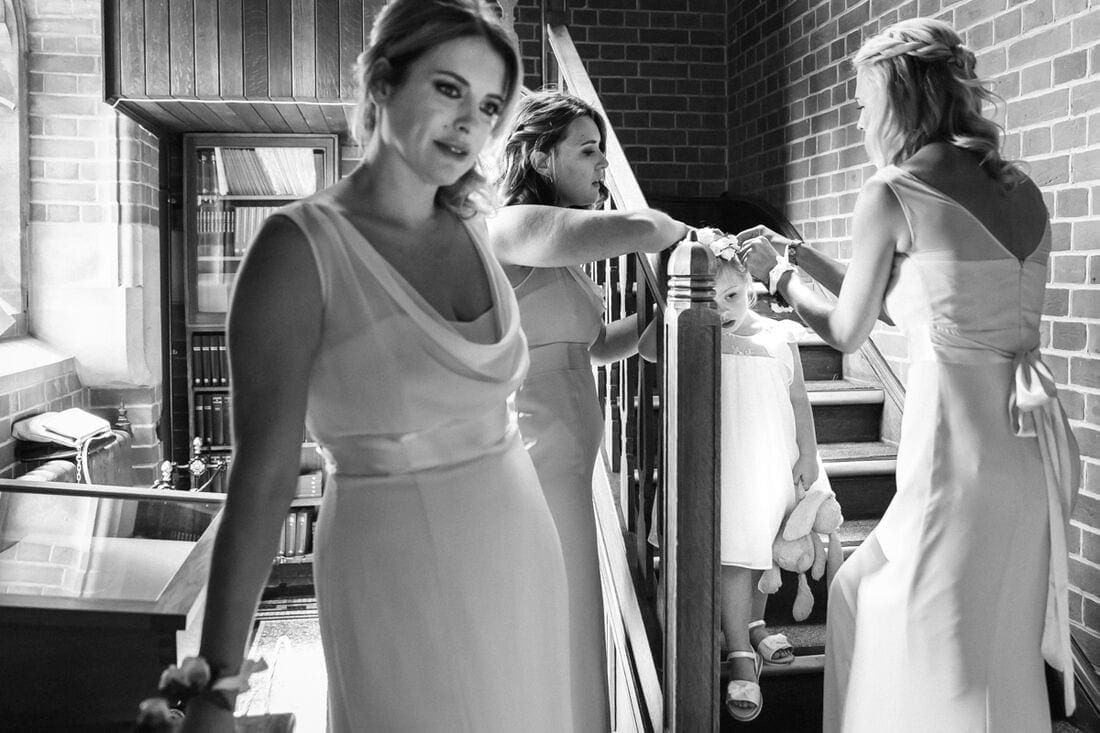 Arriving at the bride’s beautiful family home in the morning, I was confronted with a hive of activity and the whirring noise of hairdryers, expertly wielded by hair and makeup artist Amanda White and her team. This kind of cacophony of sound and chatter (notice I didn’t use the word chaos!) might put some photographers off, but I absolutely love the photographic opportunities that it creates, and with such beautiful natural light as this, it really is a dream to photograph.