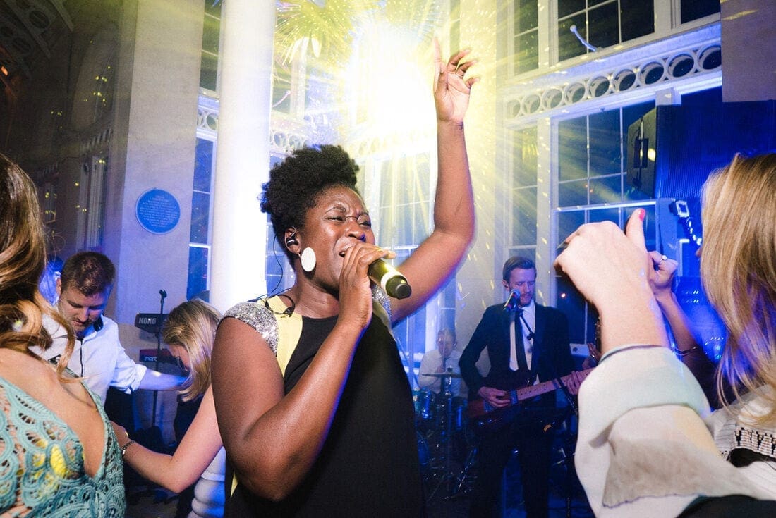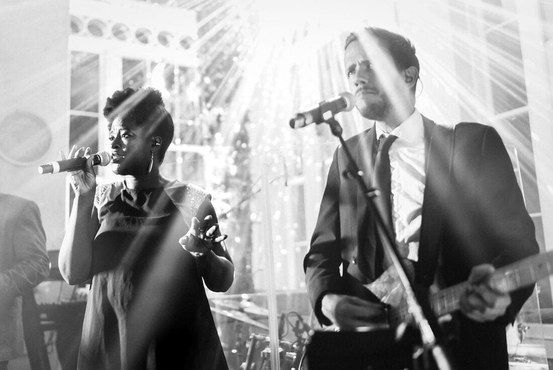After an initial drinks reception in the courtyard we well all led down to the glasshouse by the band were I had time to make some 4×5 large format film portraits of the couple before they sat down to a stunning menu prepared by Create. One of the most amazing features of holding the reception in a space like the glasshouse is that as evening approaches and the speeches began, the mood of the lighting had totally changed. Before we knew it the day was drawing to an end and the band Hand Fulla Soul came on to get the party going. A huge thank you must also go to my good friend Davina of Image Bliss Photography who helped out as my second photographer on the day.