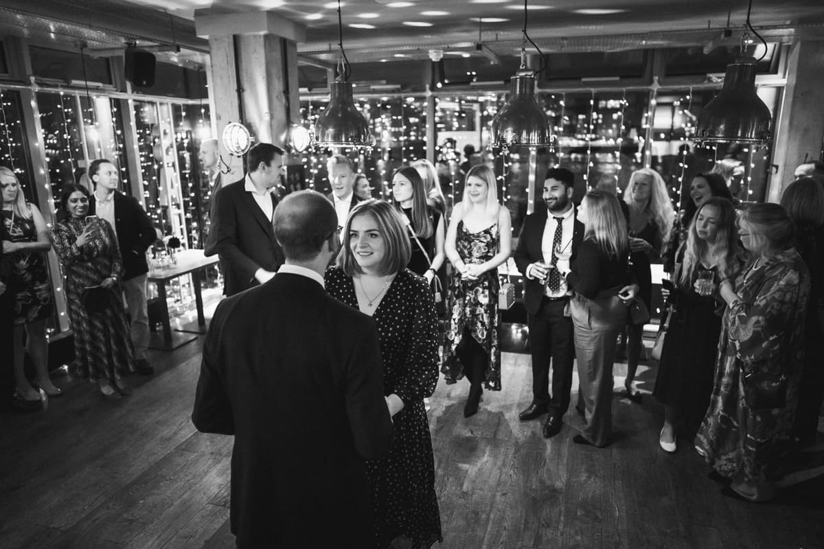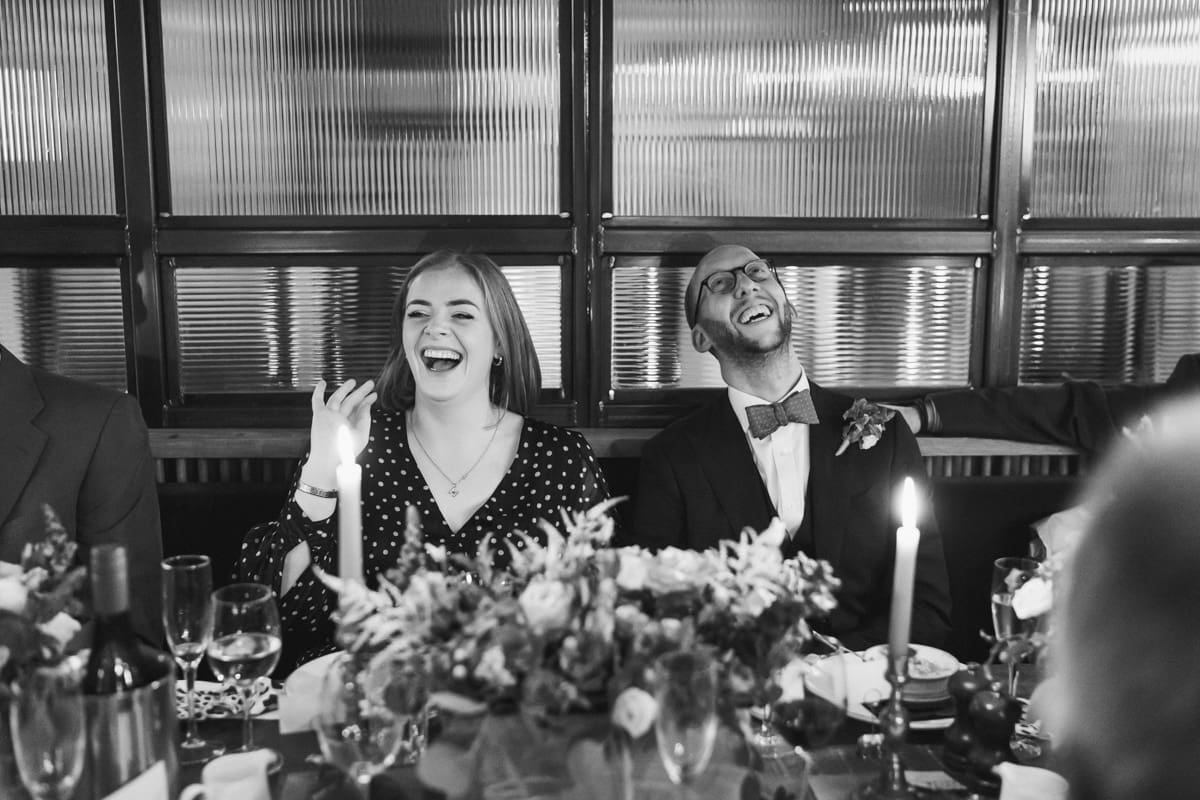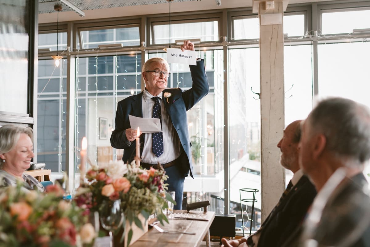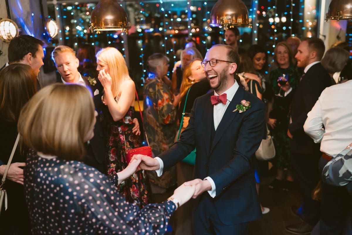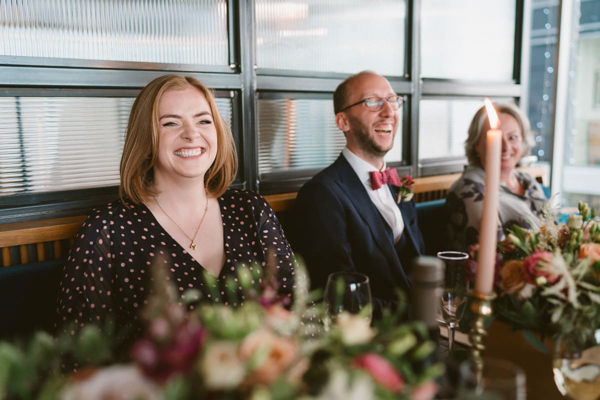 It wasn’t until much later in the afternoon that we made the short walk along the River Thames to The Sail Loft, that describes itself on their website as, “Serving up fresh food and fabulous drinks with a side order of stunning views. Drink or dine at the water’s edge courtesy of our beautiful outdoor terrace, or enjoy the panoramic cityscape from our first-floor dining area.” For this wedding reception the couple had indeed hired the whole of the first floor, and as you can see for some of my pictures below, the positioning on the banks of the Thames does indeed lead to a stunning view in both directions along the river. As for the interior, the nautical/industrial vibe of the decor gives the space a very modern edge, whiles also giving a nod to the seafaring heritage of the area, and the beautiful flower arrangements that you see below were all done courtesy of the wonderful Hannah Jordan Flowers who’s wedding I happen to hae photographed a few years earlier at Clifton Nurseries.