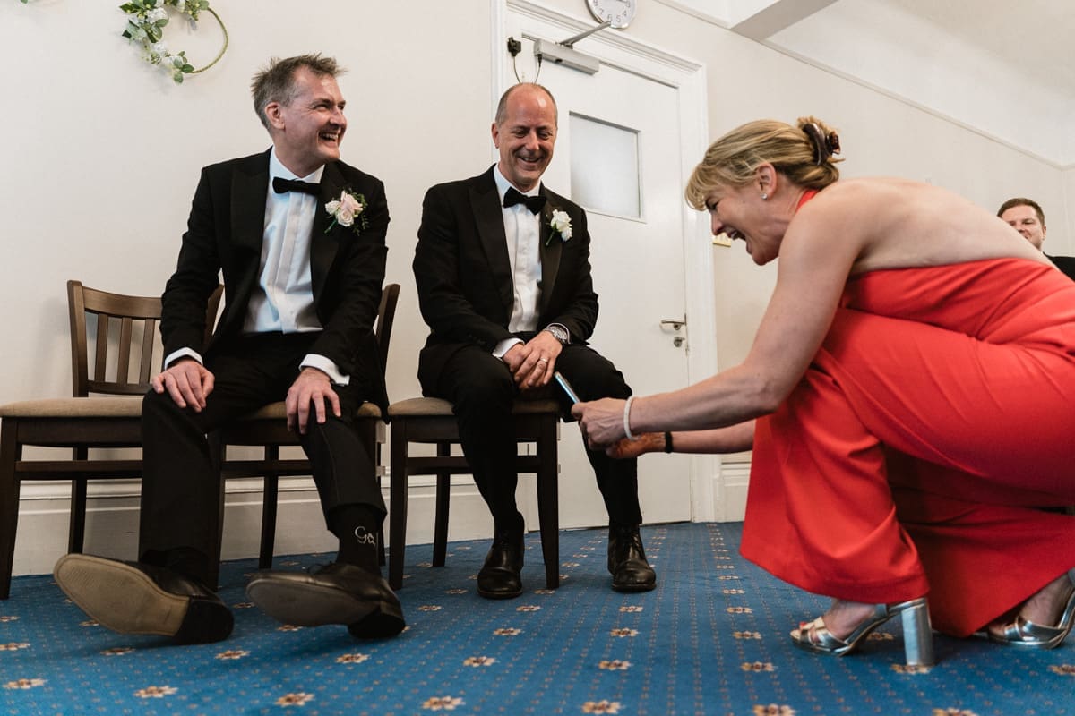 Sharon and Mark’s epic Guildford wedding used not 1, not 2, but 3 beautiful Guildford wedding venues, which prompted me to make this post about my top 10 Guildford wedding venues. Their day started with Sharon getting ready in a stunning Air B&B in nearby in Woking, while Mark got ready with family at home in Guildford, before meeting up with friend at Ye Olde Ship Inn just opposite the Guildford Register Office. The Register office in Guildford, which also known as Artington House is famed for being the place where Peter Sellers and Britt Ekland married in the 60s.
