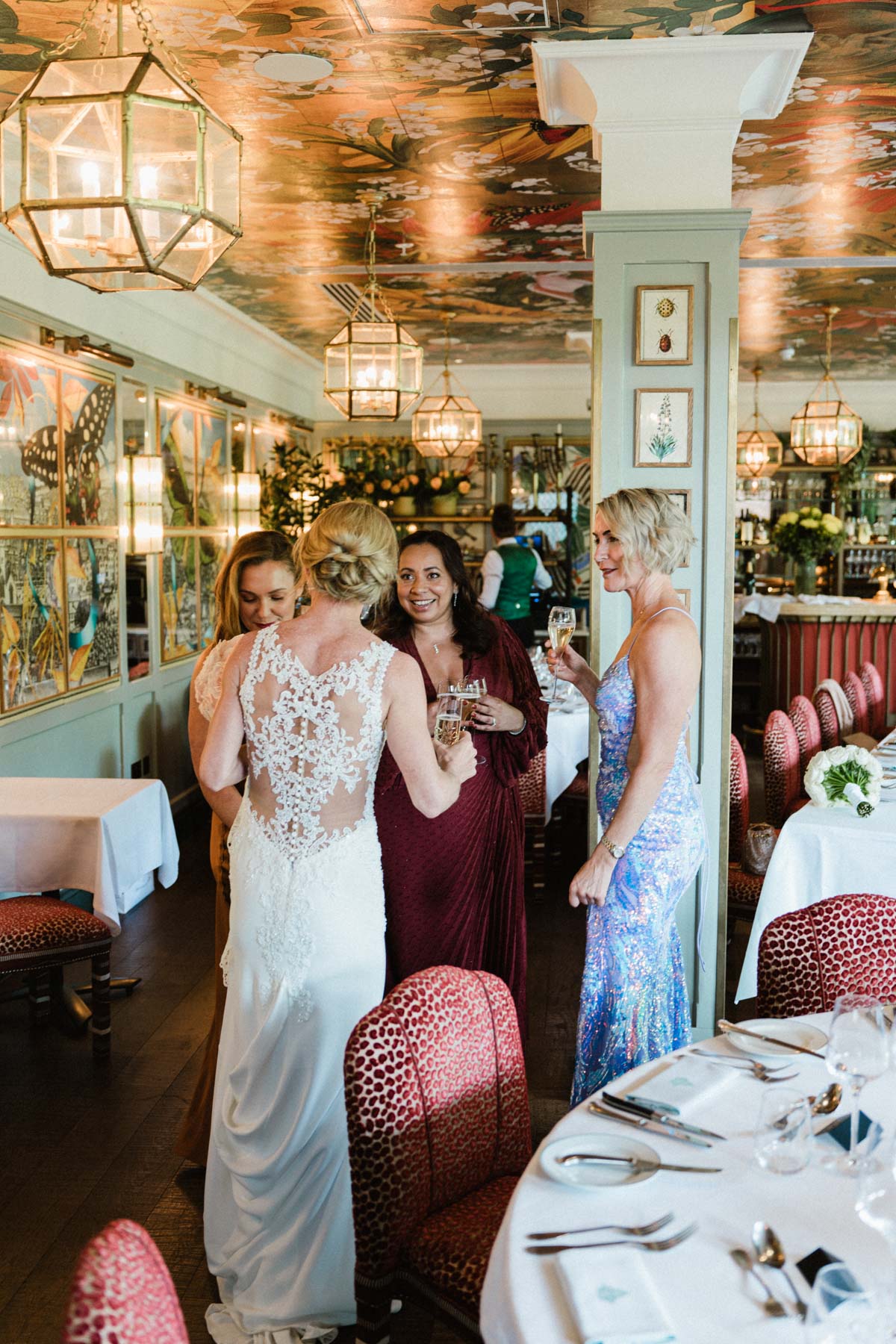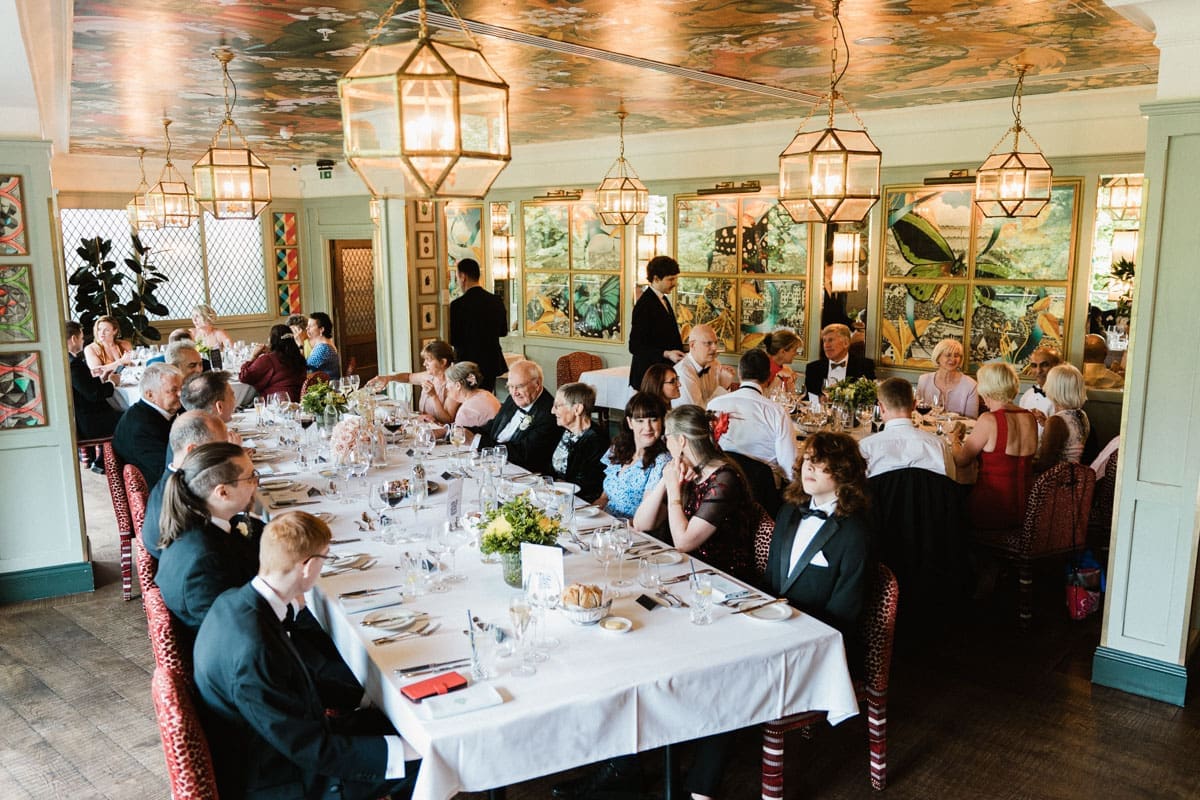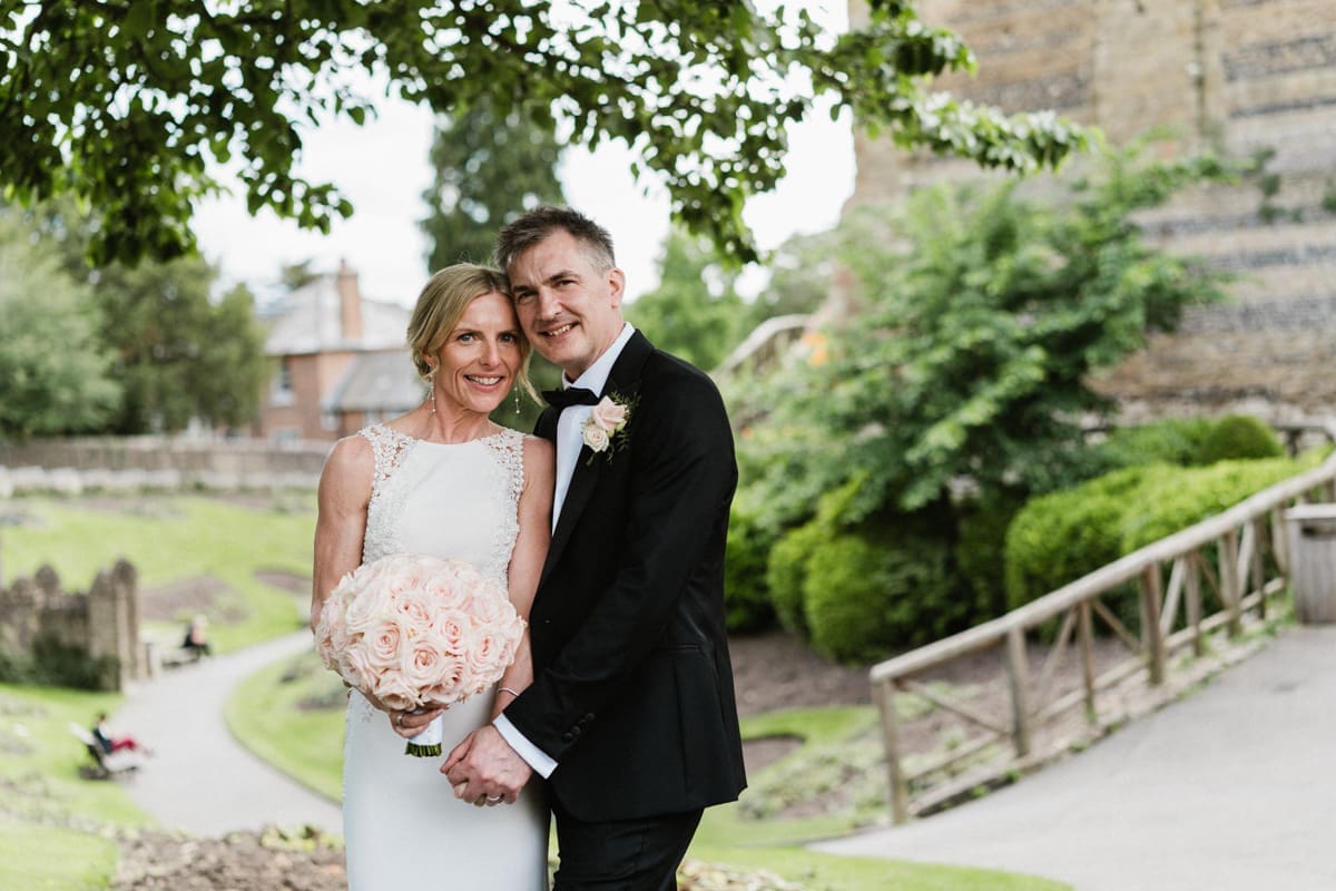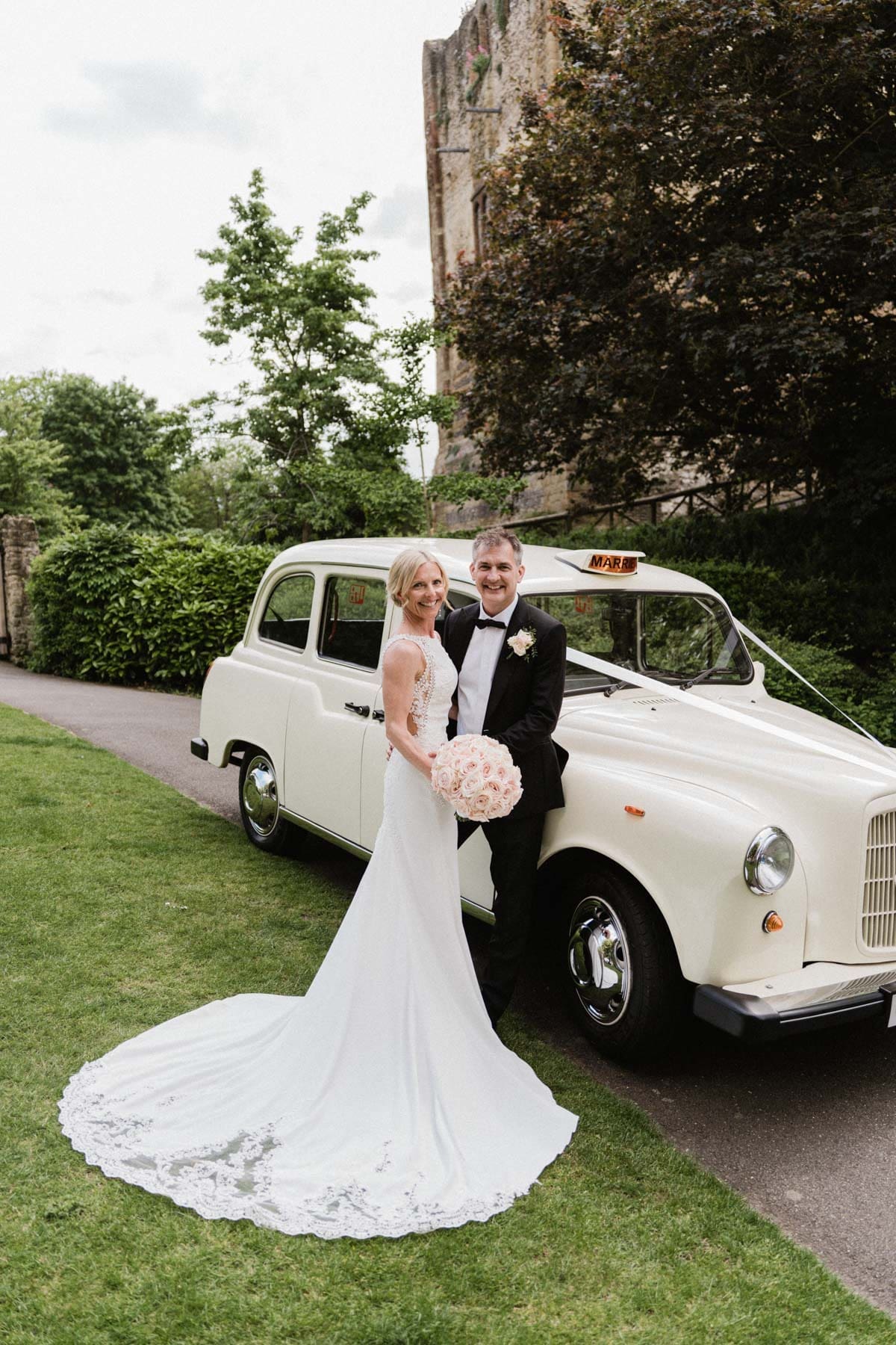 After a lovely ceremony with plenty of laughter, we jumped in a white wedding cab for the short drive into Guildford town centre, where we pulled the cab off the main road to get a few portraits in front of Guildford castle. Conveniently the venue for their reception was The Ivy, which is just across the road, and has a stunning private dining room with a lovely balcony that overlooks the Castle grounds.