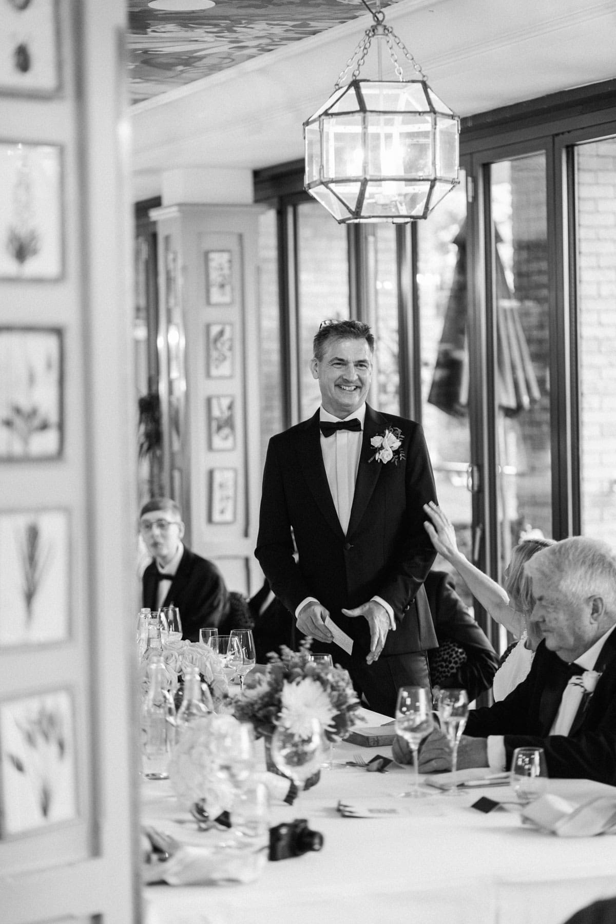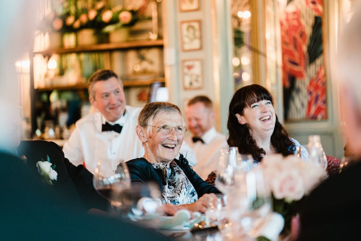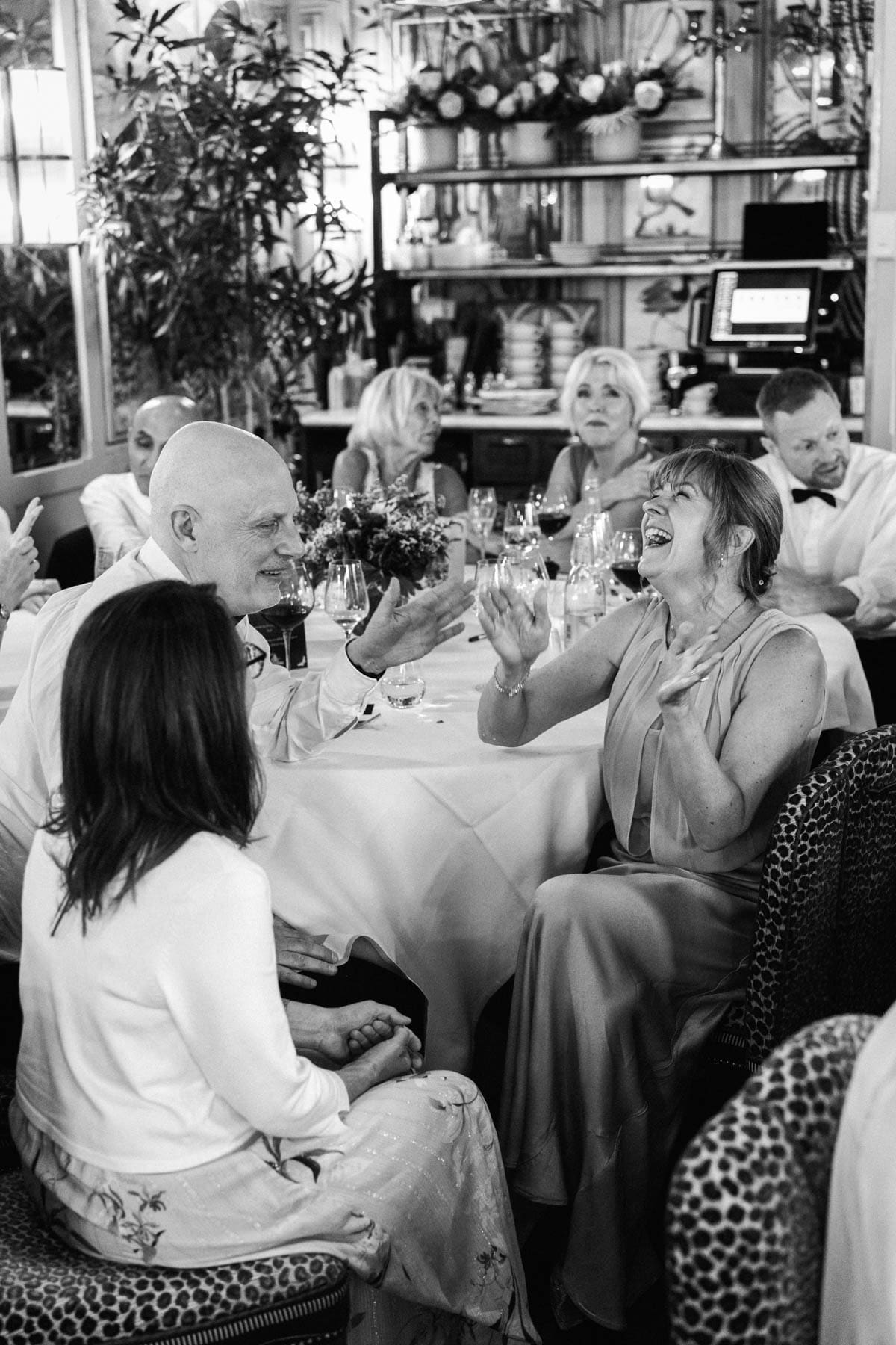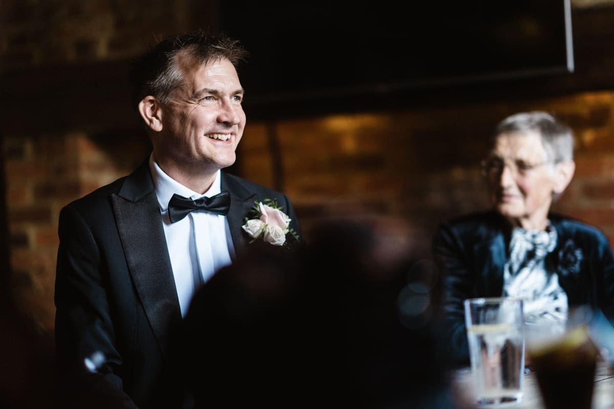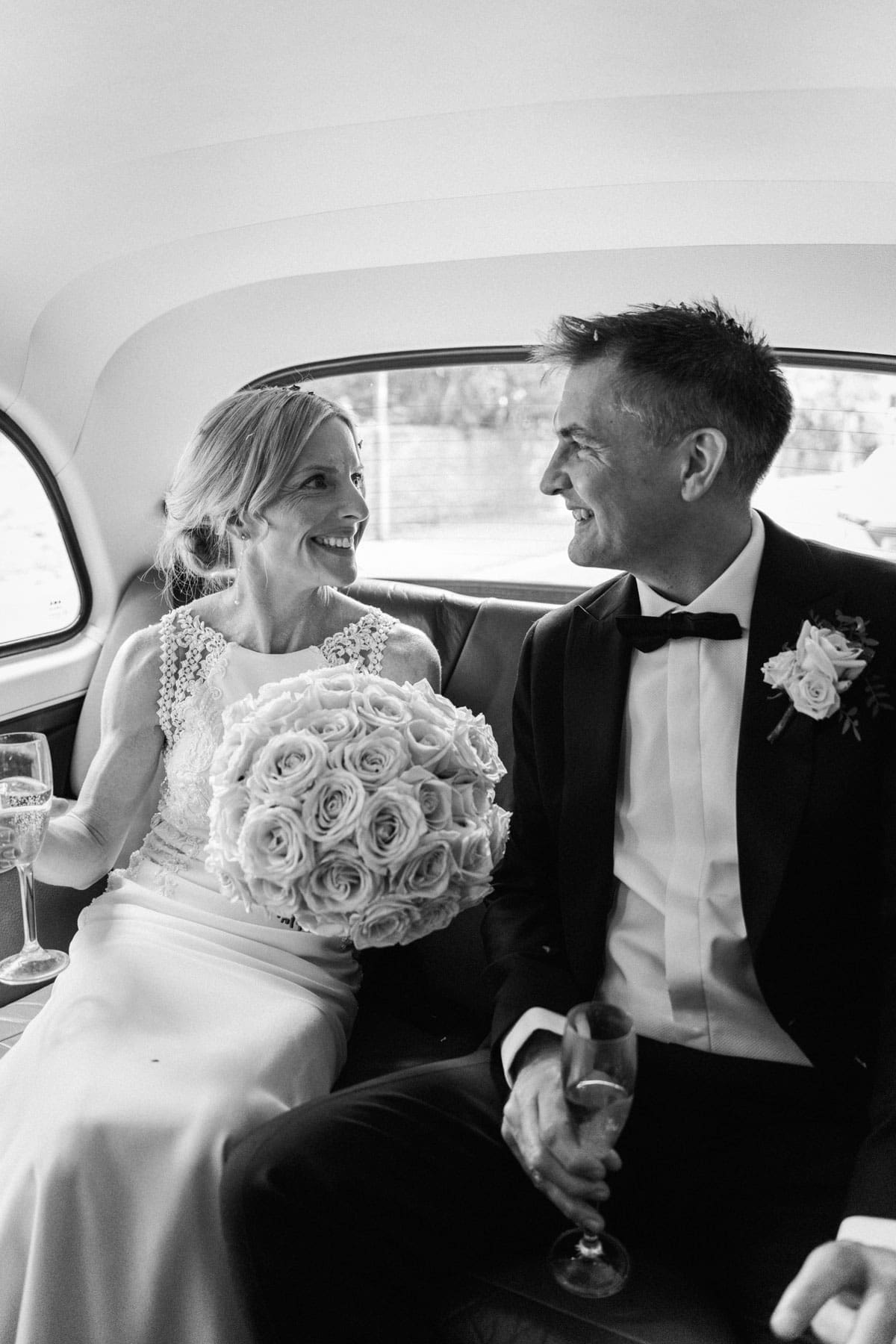 After a lovely ceremony with plenty of laughter, we jumped in a white wedding cab for the short drive into Guildford town centre, where we pulled the cab off the main road to get a few portraits in front of Guildford castle. Conveniently the venue for their reception was The Ivy, which is just across the road, and has a stunning private dining room with a lovely balcony that overlooks the Castle grounds.