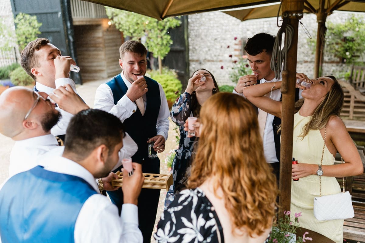 Upwaltham Barns West Sussexwedding guests arriving in the rain father of the bride hugs his daughter on her wedding day wedding guest fashion the first kiss as husband and wife wedding guests welcome the couple into the wedding breakfast sister of the bride giving her wedding speech beer pong at a wedding at Upwaltham Barns first dance in the evening of the wedding wedding guests partying at Upwaltham Barns