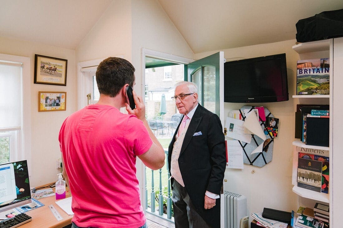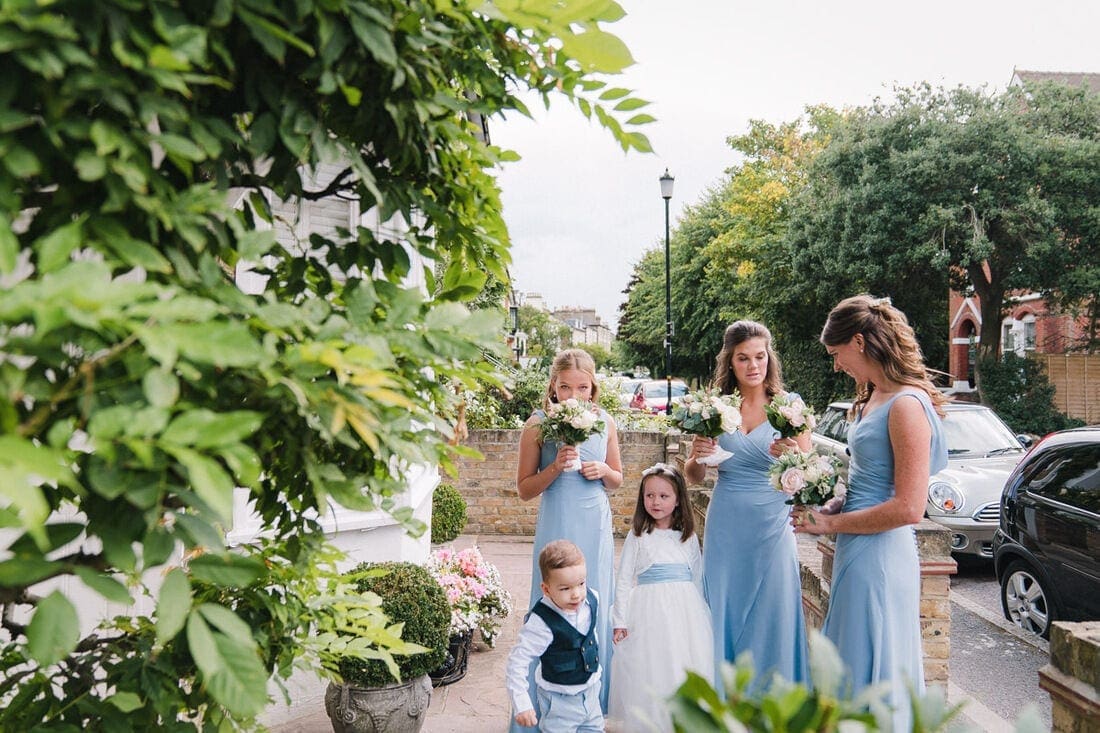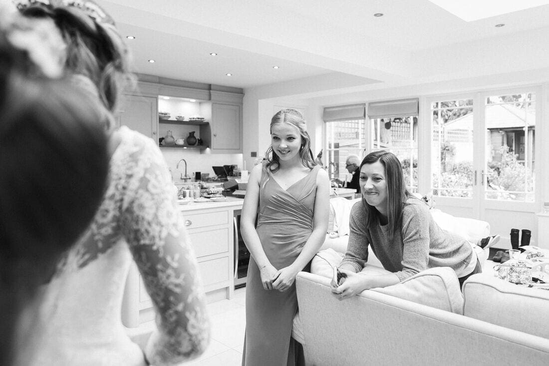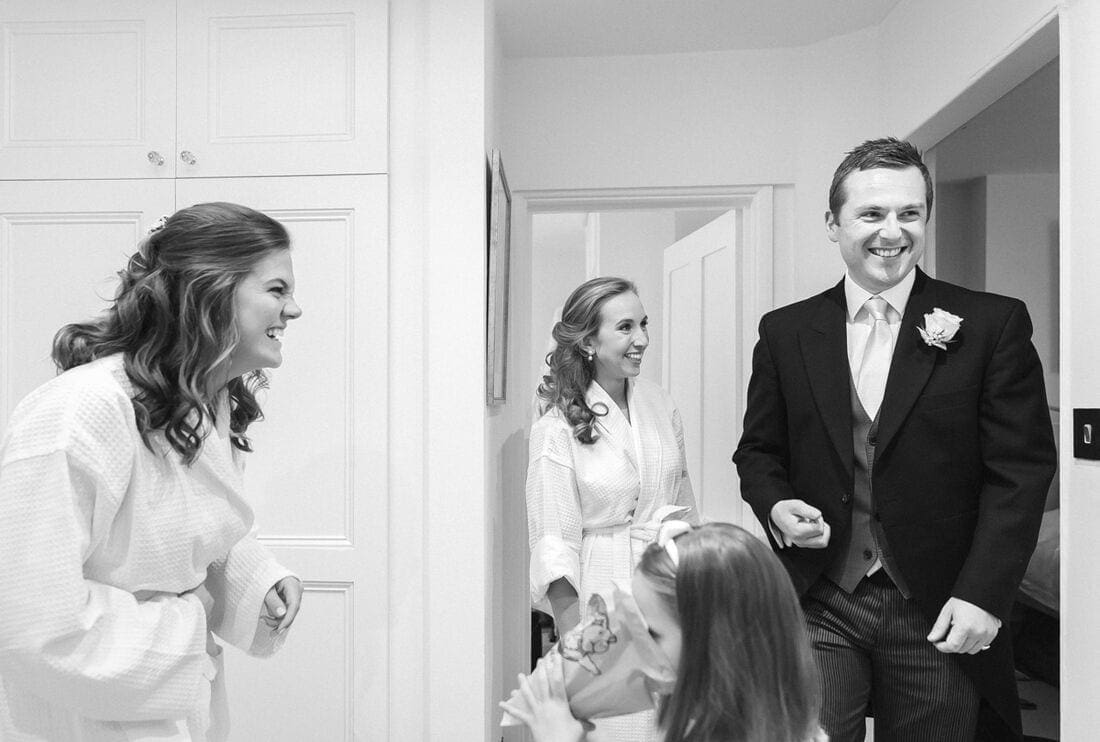 This wedding is also a great example of my approach to documentary wedding photography. It’s become a bit of a buzz word among wedding photographers in recent years, and can sometimes be used to describe any picture that isn’t posed. For me, there’s a bit more to it than that, and it’s not quite so black and white, if you excuse the pun! For me, it’s about looking for those little “in-between moments” that aren’t necessarily obvious wedding moments that a couple would expect from their photographer, but which fill in gaps in their memory, like the bridal party gathering outside the family home as they wait to go to the ceremony, or a father/daughter hug after a wonderful speech (the finishing touches to which, you can see dad making earlier in the day). It’s also about shooting through the moment and realising that the story may continue after the moment, like the joy after the first kiss, or the wonderful sequence during the wedding photography at Ham House that takes place when one of Lucy’s bridesmaids caught the bouquet. Note to self, I need to start carrying more business cards for situations like this!