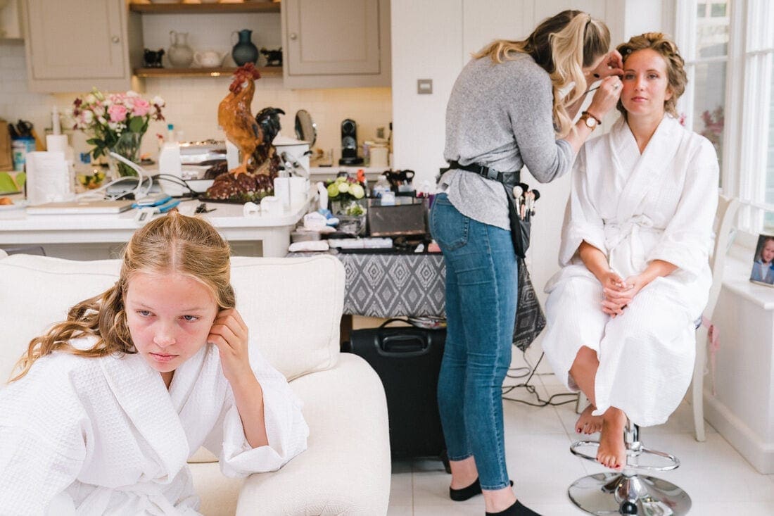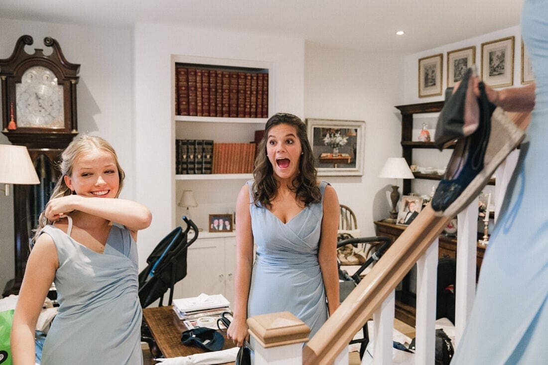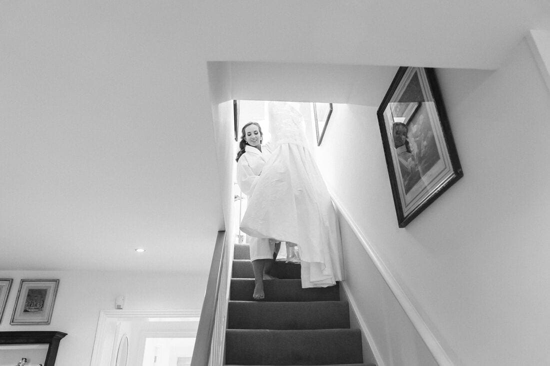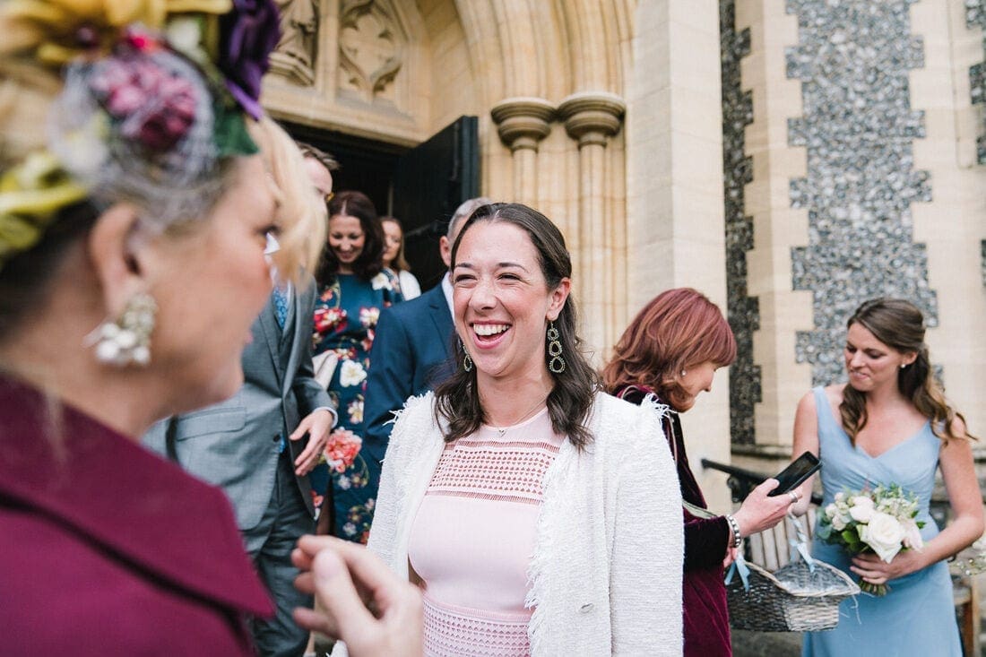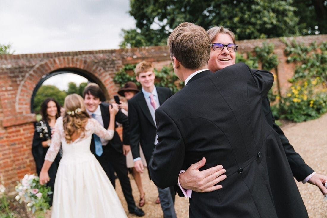 This wedding is also a great example of my approach to documentary wedding photography. It’s become a bit of a buzz word among wedding photographers in recent years, and can sometimes be used to describe any picture that isn’t posed. For me, there’s a bit more to it than that, and it’s not quite so black and white, if you excuse the pun! For me, it’s about looking for those little “in-between moments” that aren’t necessarily obvious wedding moments that a couple would expect from their photographer, but which fill in gaps in their memory, like the bridal party gathering outside the family home as they wait to go to the ceremony, or a father/daughter hug after a wonderful speech (the finishing touches to which, you can see dad making earlier in the day). It’s also about shooting through the moment and realising that the story may continue after the moment, like the joy after the first kiss, or the wonderful sequence during the wedding photography at Ham House that takes place when one of Lucy’s bridesmaids caught the bouquet. Note to self, I need to start carrying more business cards for situations like this!